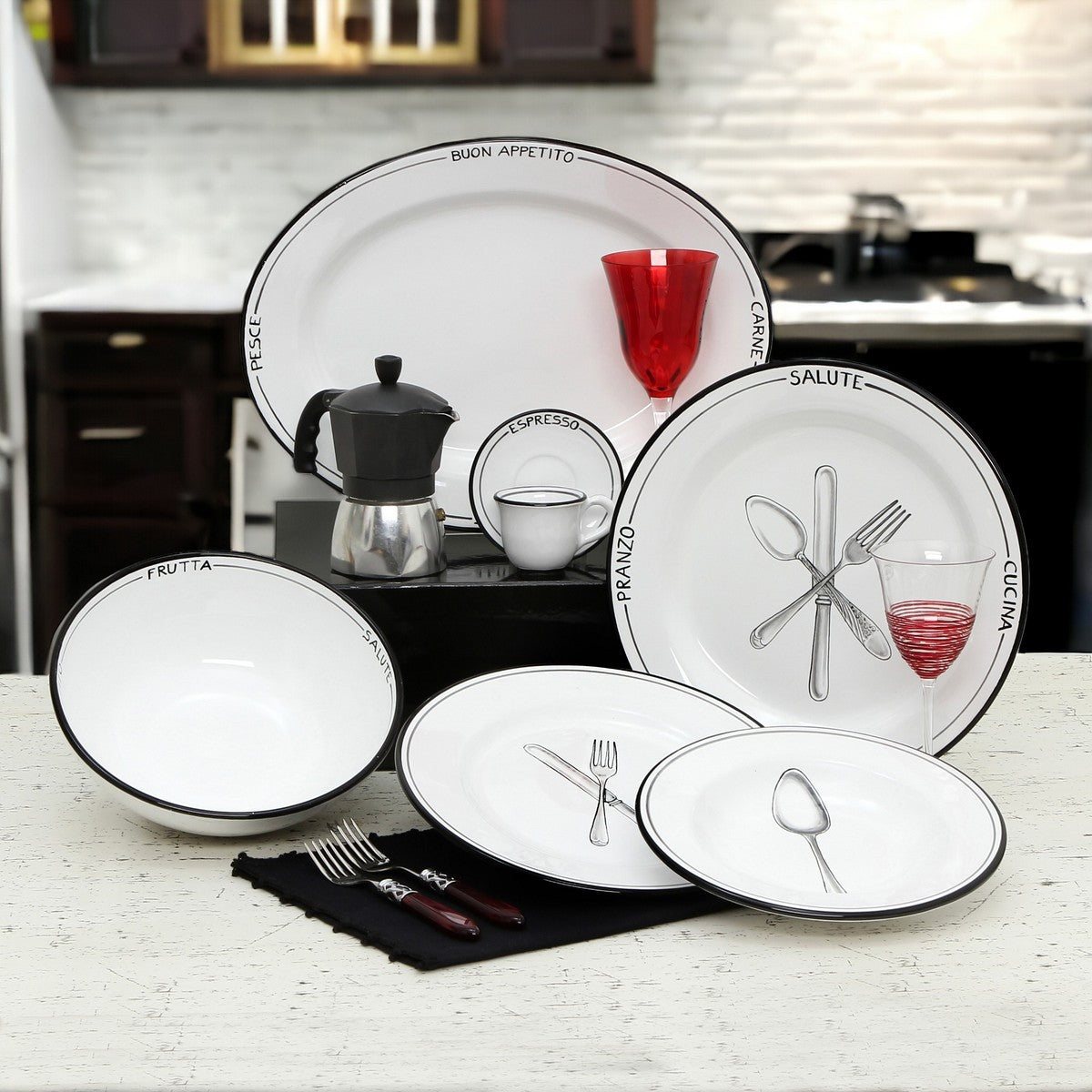 POSATA NERO Collection by Deruta of Italy - �A clever dinnerware design by retailer, author, and trendsetter Peri Wolfman.One of Italy s most beloved Deruta collections, POSATA, has been reimagined with a bold new look by Peri Wolfman a renowned retailer, author, and trendsetter. The original gold trim has been...